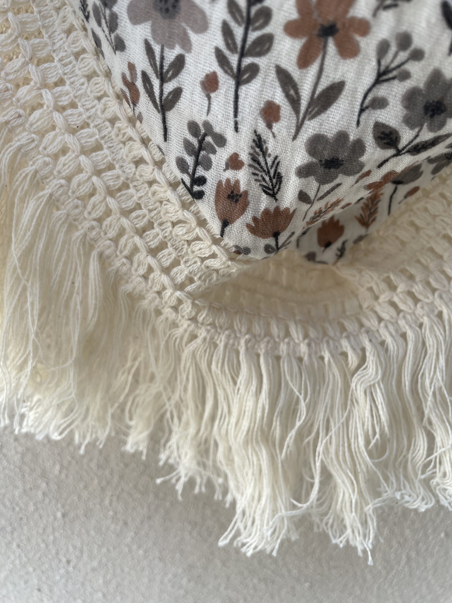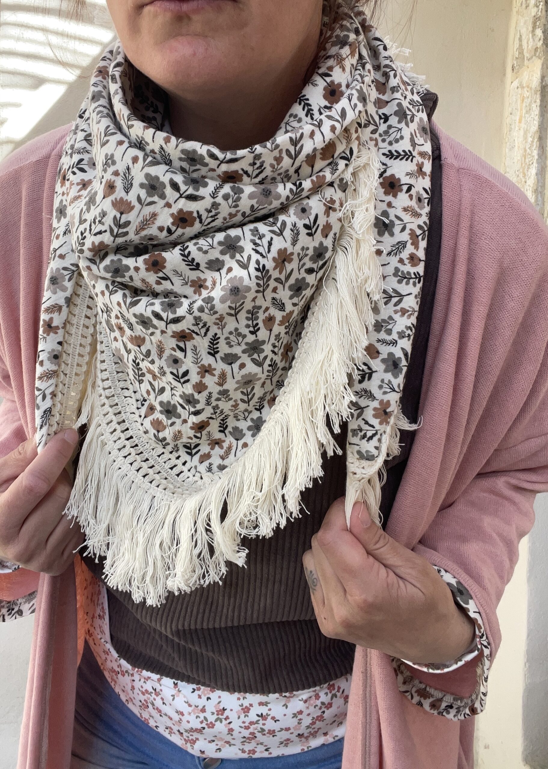 Voici un chèche fait main et unique en double gaze de coton