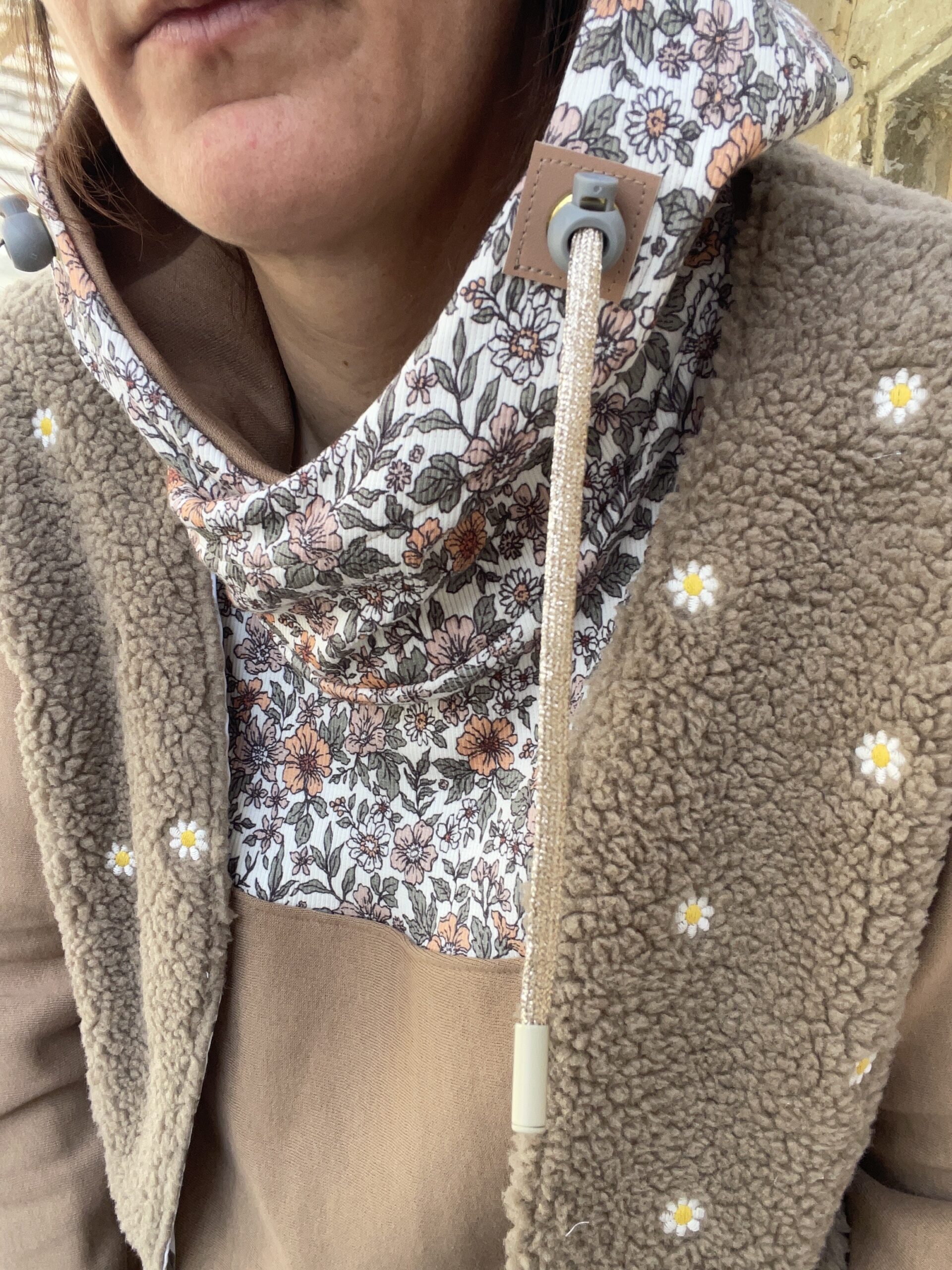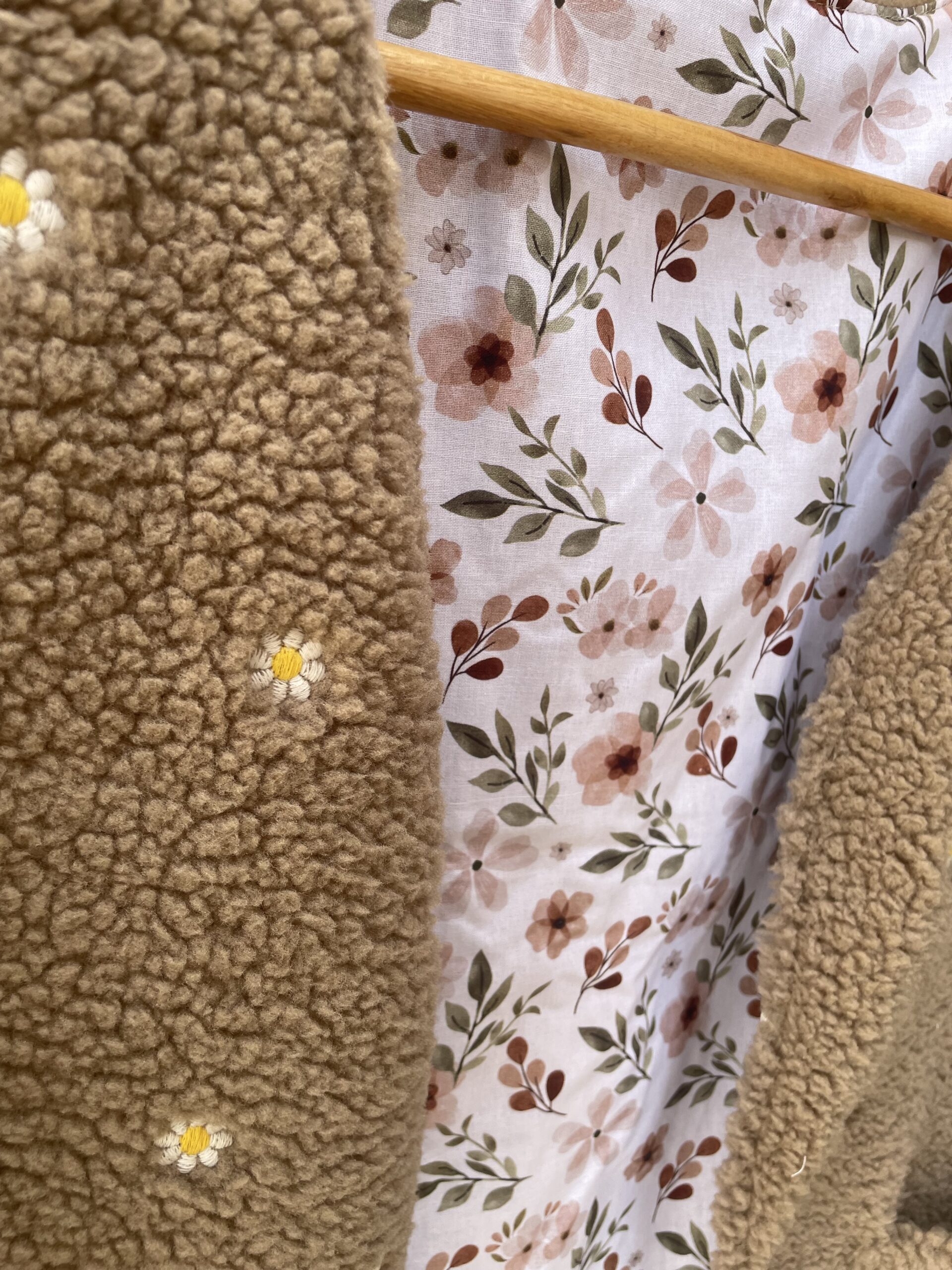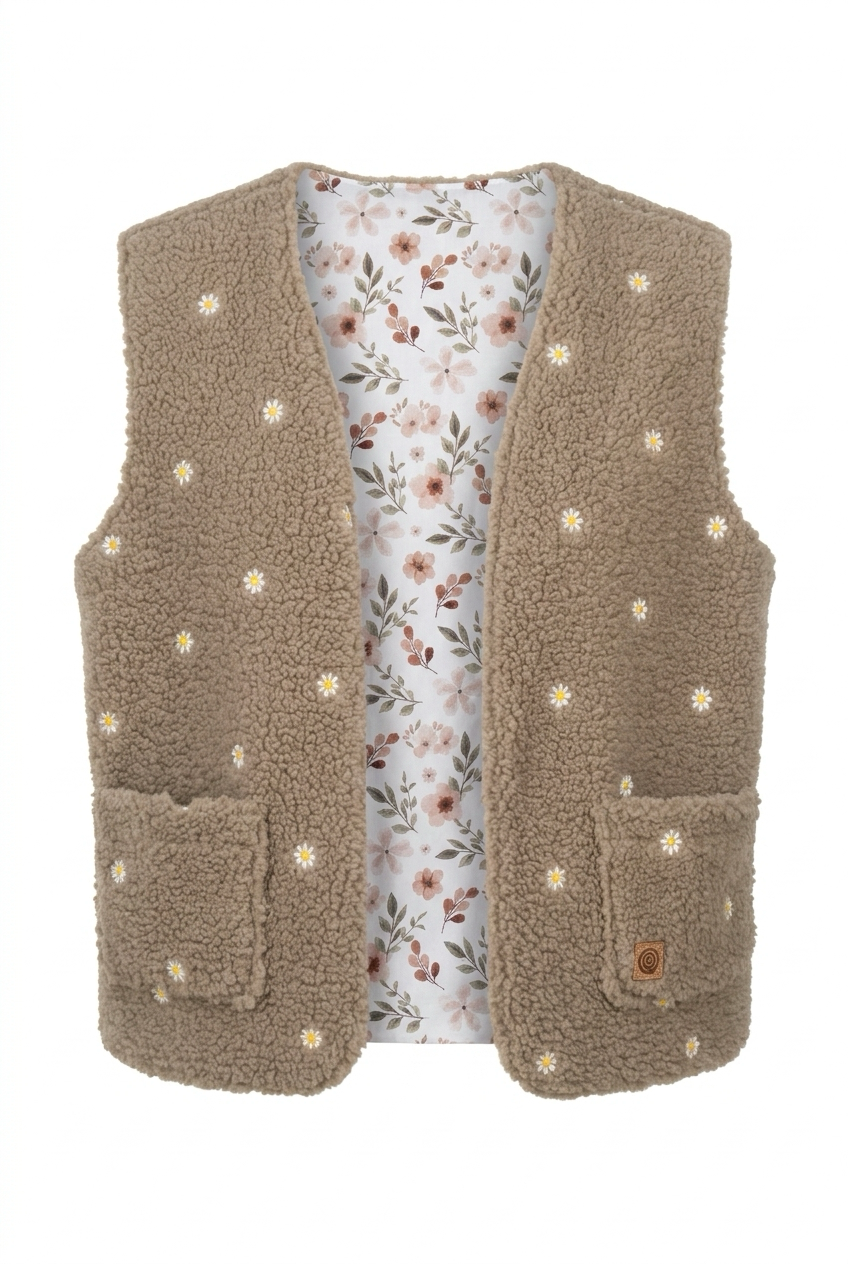 Craquez pour ce gilet sans manches, une pièce originale qui apporte du caractère à votre garde-robe. Avec ses motifs floraux brodés sur un fond beige et sa doublure fleurie , ce gilet offre un véritable look unique à ta tenue