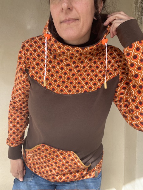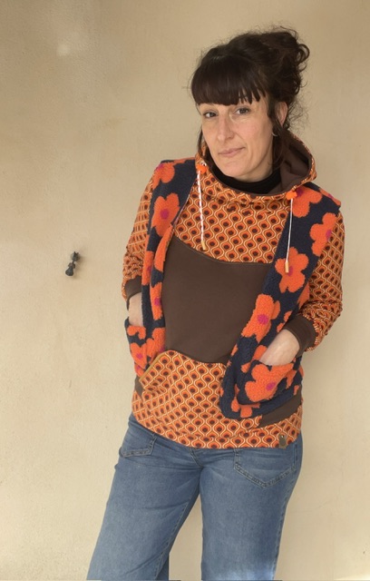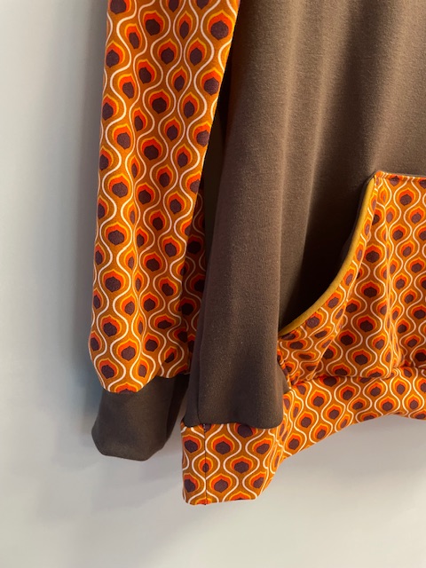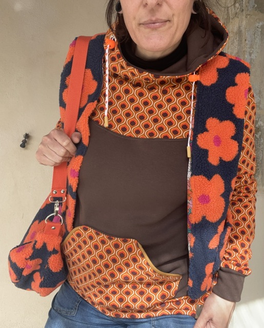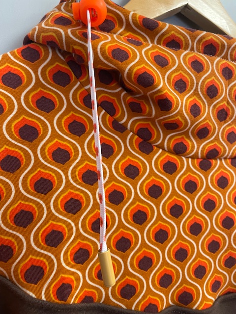 Une poche kangourou sur le devant, une capuche avec oeillets et deux liens en coton bio et tirette en plastique recyclé de fabrication française.