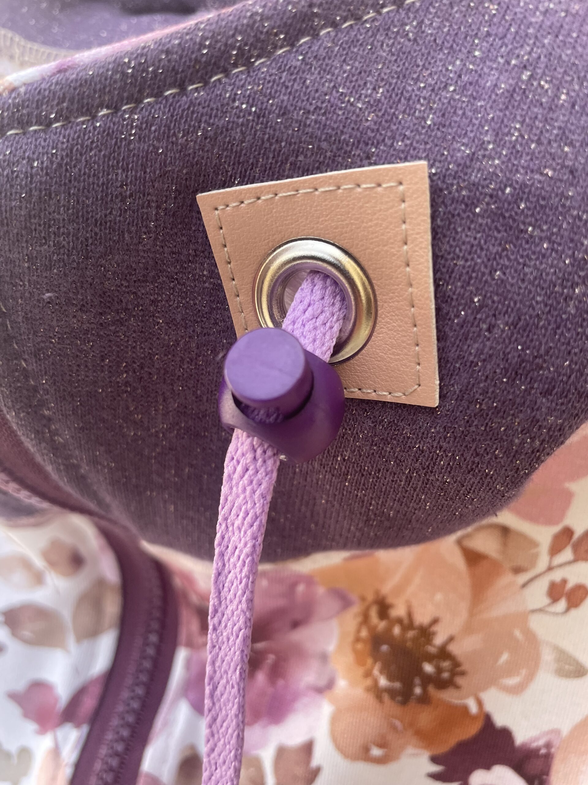 Réalisé en maille jersey lurex extensible et jersey de coton bio avec deux poches et une grande capuche surmonté de deux liens en coton bio et stop cordon en plastique recyclé d’une petite entreprise française.
